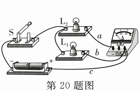 20. 如图所示是用电流表测量电流的实物连接图,请回答下列问题。