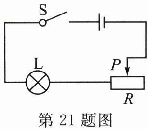 21. 小明制作了一款可调亮度的小台灯,电路如图所示。电源电压保持不变,灯泡的电阻为10Ω,不考虑温度对灯丝电阻的影响,滑动变阻器标有“20Ω 1A”字样。