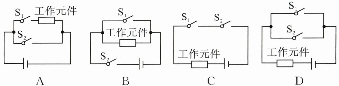 11.小科想设计家庭保险箱指纹锁的电路图,指纹识别成功相当于开关闭合,录入两人的指纹,其中任意一人的指纹识别成功就能开锁。下列电路图符合要求的是 …………………………… ( )
