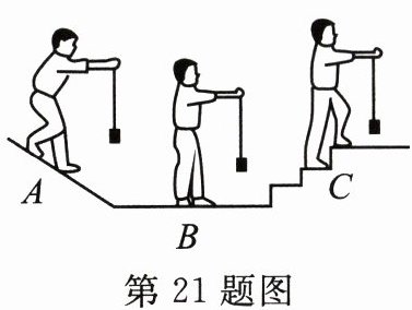 21.小李同学为了研究物体受到重力的方向,他提着用细线吊着的物体从A处走到B处,再从B处走到C处,如图所示。该现象表明______。当小李松手之后,重物就会落下,这又表明______。