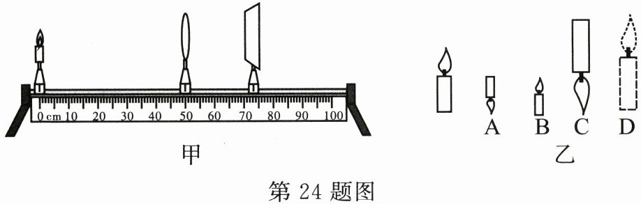 (4)通过实验观察可知,在图乙中左边的蜡烛通过凸透镜不可能形成的像是______(填字母)。