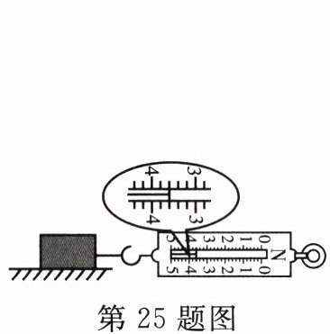25.某机械厂在雨天用传送带运输物品时发现:部分区域货物打滑,另一些区域抓地更牢。为探究水量对摩擦力的影响,小金设计了如图所示的实验:在水平玻璃桌面滴上不同数量的水并涂匀,立即用弹簧测力计拉着一块用油漆漆过的木块在玻璃桌面上做匀速直线运动,测得摩擦力数据如表所示。
