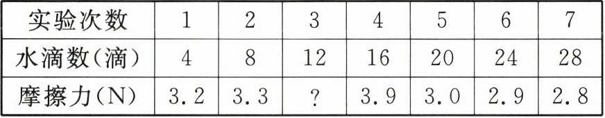 |摩擦力(N)|3.2|3.3|?|3.9|3.0|2.9|2.8|