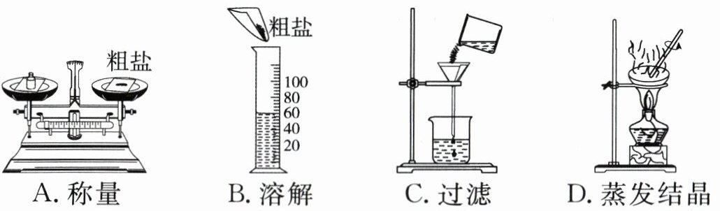 2. 粗盐提纯实验需经过称量、溶解、过滤、蒸发结晶等操作,则下列相关操作规范的是………………………………………………………… ( )