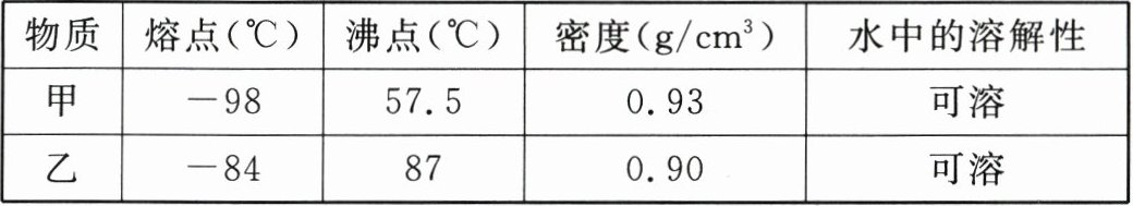 5. 下表列出了甲、乙两物质的部分性质。由此可知,要将由它们组成的混合物相互分离的最佳操作方法是 ……………………………… ( )