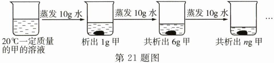 21. 如图是对$20^{\circ }C$一定质量的甲的溶液进行恒温蒸发的结晶实验过程,请分析回答下列问题。