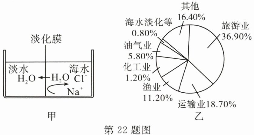 (1)图甲淡化海水的方法是______(填“蒸馏”或“反渗透”)法,淡化时要控制海水侧压强______(填“>”“<”或“=”)淡水侧,使______(填微粒名称)通过淡化膜。