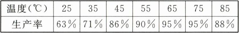 (4)用蒸馏法从果仁油中提取生物柴油时,生物柴油的生产率受温度的影响如表所示。根据相关信息,小海认为生产生物柴油的最佳温度为$65^{\circ }C$。请判断小海的结论是否正确,并说明理由:______。