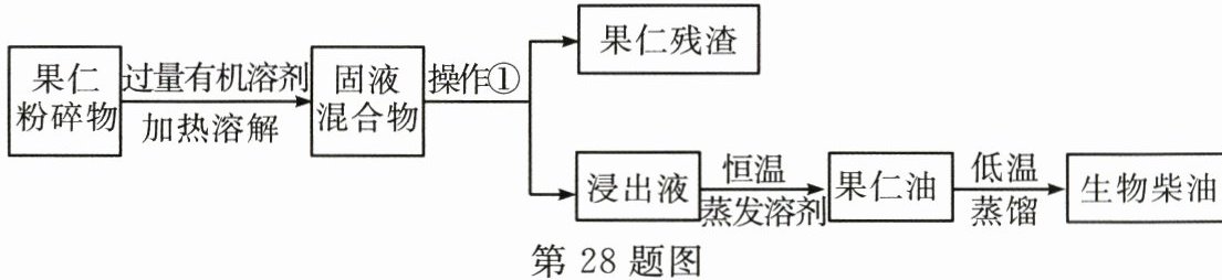 28. (8 分)为拓展能量来源,我国推广种植一种“生物柴油”树——麻风树,其果实内含有果仁油,工厂通常通过浸取法提取果仁油,再低温蒸馏得到生物柴油,主要过程如图: