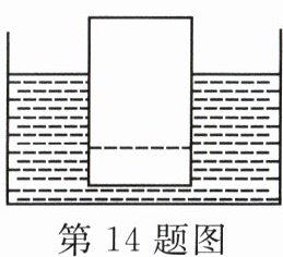 14. 如图所示,密度均匀的长方体木块漂浮在水面上。若将木块虚线以下的部分截去,则……………………( )