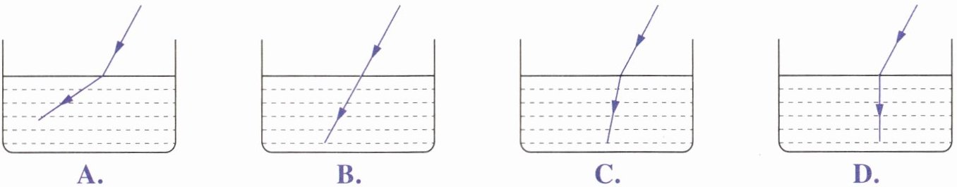 (1)朵朵猜测彩虹的形成跟光与水有关,并通过模拟实验进行验证。她用一束激光对着水进行照射,会出现的现象是( )。