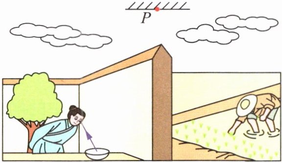 4.汉代初年成书的《淮南万毕术》记载:“取大镜高悬,置水盆于其下,则见四邻矣。”这句话的大意是,利用高挂在上方的镜子和地上的水盆,可以看到农夫在田间耕作的情景。这是世界上有记载的最早的潜望镜。