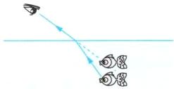 所以人们站在岸上看见的鱼的位置比实际鱼的位置要浅一点。