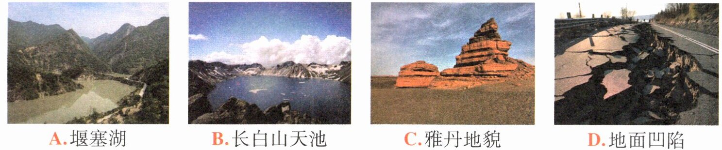 A.堰塞湖 B.长白山天池 C.雅丹地貌 D.地面凹陷