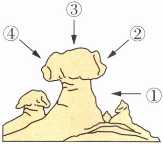 【解析】空气受热后体积膨胀,热空气比同体积的冷空气轻,热空气会上升,周围的冷空气会补充过来,空气在水平方向流动起来,从而形成风。分析图片可知,在"风蚀蘑菇"的形成示意图中,空气流动方向跟实际情况最接近的是①。