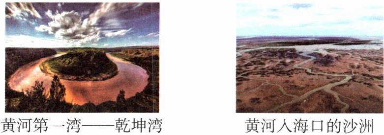 【解析】乾坤湾的两岸一面为凹岸,一面为凸岸。凹岸一侧有悬崖,地形险峻;凸岸一侧是平缓的河滩。通常情况下,凹岸主要受侵蚀作用影响,凸岸主要受堆积作用影响。黄河在流经黄土高原时支流比较多,把大量的泥沙带入河流,使黄河的含沙量大大增加,这些泥沙中的一部分随水流到黄河入海口,在这里沉积形成沙洲,所以黄河入海口的沙洲是黄河水带来的泥沙沉积形成的。
