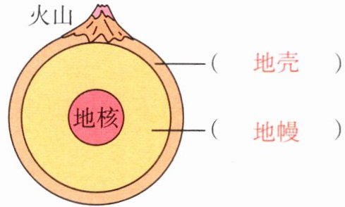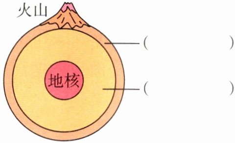 (3)下图是地球上的火山示意图,请在括号中填上地球结构的名称。