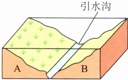 (3)两个斜坡都形成了许多“小河”,且“小河”汇入引水沟时都带有泥沙,这表明有降水发生,即降水对土地有侵蚀作用。