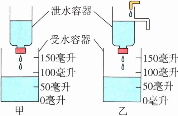 (2)他们继续利用如图乙所示的装置进行测试,发现受水容器中的水积聚到50毫升时,还是需要3分钟。继续推测,如果受水容器中的水从0积聚到100毫升,那么可能需要( )。