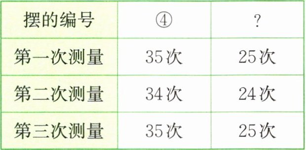 (3)根据表中的数据,朵朵测试的另一个摆不可能是( )。