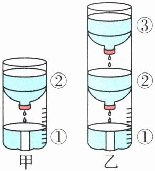 (4)贝贝发现自己的水钟计时不准确,于是他在②号瓶上方增加了一个③号瓶,在①号瓶上重新标出刻度(如图乙所示)。改进后的水钟的计时准确性提高,是因为______号瓶的水位更稳定。