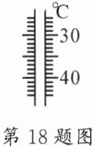18.如图所示的仪器是实验室常用的温度计的一部分,此时它的示数为-34$^{\circ}C$,请用铅笔在图中把温度计的液柱部分涂黑。