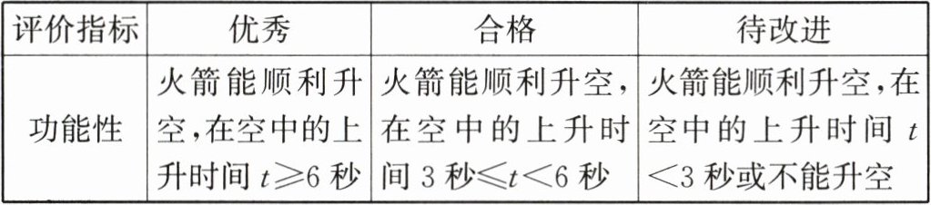 (3)下表是小组同学制作的水火箭的功能评价量表