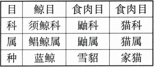 | 种 | 蓝鲸 | 雪貂 | 家猫 |
