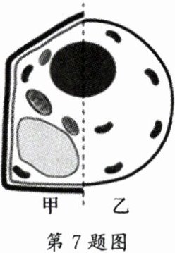 7.图甲和乙是两类不同细胞结构模式图,下列叙述正确的是 ( )