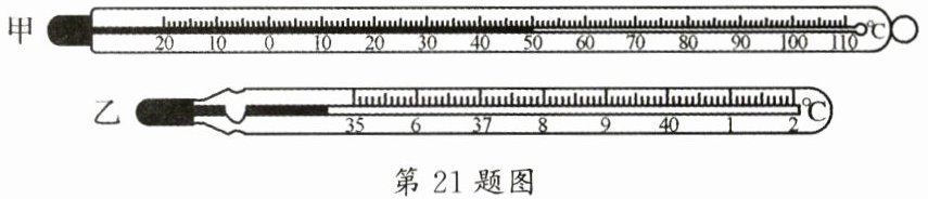 21.常用温度计是根据液体______的规律制成的。图中______(填“甲”或“乙”)是体温计,测量体温时,体温计______(填“可以”或“不可以”)离开人体读数。