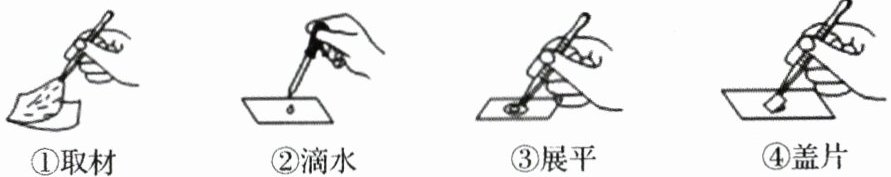 6.如图是制作洋葱鳞片叶内表皮细胞临时装片的基本步骤。若在显微镜中观察到的细胞有较严重的重叠现象,则制作装片步骤中最可能有问题的是( )