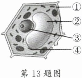 13.某同学制作了成熟叶肉细胞的模型,如图所示。其中表示液泡结构的是( )
