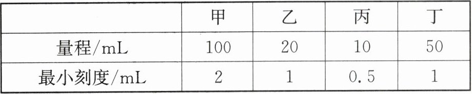 | 最小刻度/mL | 2 | 1 | 0.5 | 1 |