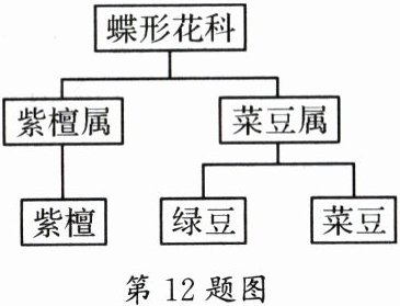 12. 如图是部分蝶形花科植物分类图解,分析不正确的是( )