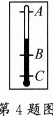 4. 如图所示为寒暑表,40℃与 10℃两条刻度线相距 AB=6 厘米,刻度线 C 与刻度线 B 相距 BC=3 厘米。下列判断正确的是( )