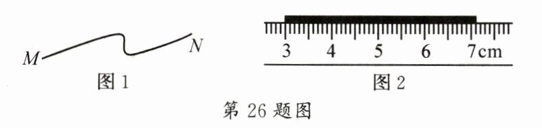 26.如图1所示,小红同学想在地图上测出曲线路径MN的长度,为后续计算真实路径长度做准备,请你帮她补充实验的方法与步骤。
