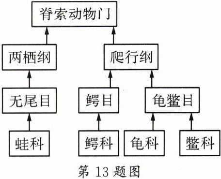 13. 如图所示为动物界中部分动物的分类图,下列有关叙述正确的是( )