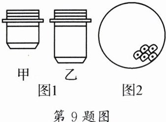 9. 用光学显微镜的一个目镜分别与物镜甲、乙进行组合,来观察人口腔上皮细胞装片(如图)。下列相关说法中,错误的是( )