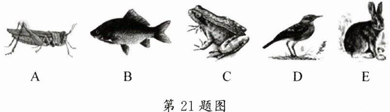 21. 如图是我们学过的五种动物,请回答有关问题: