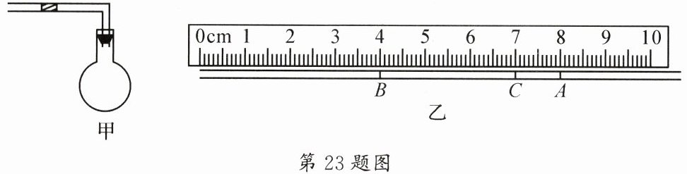 23. 小明同学尝试自制了一支气体温度计(如图甲所示)。瓶中装的是空气,装置不漏气,玻璃管中间封有一段红色液柱。