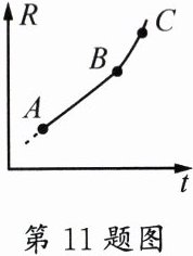 11.大爆炸理论认为,宇宙起源于 137 亿年前的一次大爆炸。除开始瞬间外,在演化至今的大部分时间内,宇宙都是膨胀的。若标志宇宙大小的宇宙半径 R 和宇宙年龄 t 的关系如图所示,图中 AB 为直线,BC 为向上弯曲的曲线,则( )