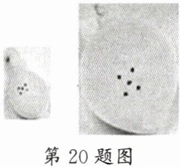 20.为了帮助我们更好地理解星系是如何运动的,我们可以建立星系运动模型,了解星系运动的特点。准备一只气球,在其表面画上一些小圆点,用打气筒持续地向气球充气,使气球不断地胀大,如图所示。