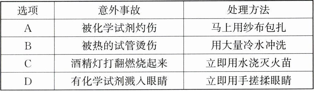 5.科学实验过程中要规范操作,注意实验安全,如果发生意外也要冷静处理。下列意外事故的处理方法中正确的是 ( )