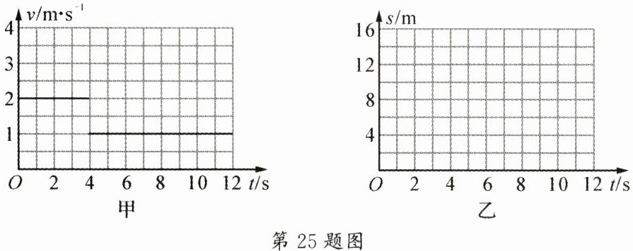 25.(8分)一辆电动玩具车做匀速直线运动,它的速度一时间图像如图甲所示: