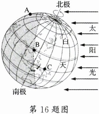 16.我们生活在地球上,时刻能感受到地球运动给我们生活带来的变化。读地球自转示意图,回答下列问题。
