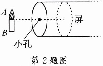 2. 某兴趣小组自制了一个小孔成像仪观察烛焰(如图)。图中的小孔和蜡烛的位置固定后,将光屏远离小孔,可观察到屏上蜡烛的像( )