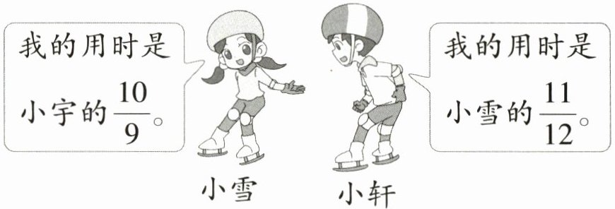 $54×\frac{10}{9}×\frac{11}{12}=55$(秒) 答:小轩用时55秒。