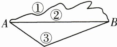5. (1)如图,从A到B有三条路可走,小华从A到B走(___)最近。