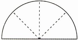 提示:把半圆对折两次相当于把平角平均分成4份,一份的度数是180°÷4=45°,2份的度数是2×45°=90°,3份的度数是3×45°=135°,4份的度数是4×45°=180°,所以能在题图中找到角的度数是45°、90°、135°、180°。