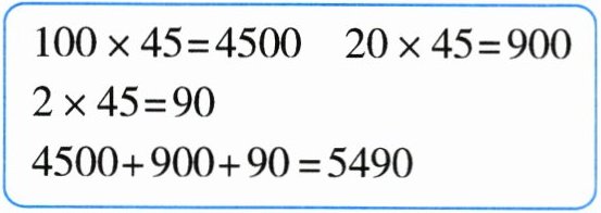 $\boxed{100×45=4500\quad20×45=900\quad2×45=90\quad4500+900+90=5490}$